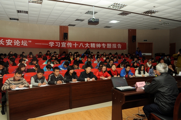 12月5日下午,我院在圖書館報(bào)告廳舉辦青年大講堂和長安論壇講座,專題學(xué)習(xí)宣傳十八大精神。院黨委副書記左曉民做客論壇,為廣大學(xué)生黨員干部作了題為《抓住主線、學(xué)懂弄通、重在落實(shí)》的專題報(bào)告。報(bào)告由我院機(jī)關(guān)黨總支、社科聯(lián)、團(tuán)委聯(lián)合舉辦。院團(tuán)委副書記蔣正治主持報(bào)告。