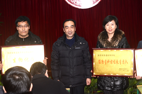 在莊重的樂曲聲中,院領(lǐng)導(dǎo)分別為專業(yè)綜合試點(diǎn)改革項(xiàng)目生物技術(shù)專業(yè)、省級(jí)精品課程《生物化學(xué)》、省級(jí)教學(xué)團(tuán)隊(duì)植物學(xué)科課程教學(xué)團(tuán)隊(duì)、省級(jí)人才培養(yǎng)模式創(chuàng)新實(shí)驗(yàn)區(qū)生物技術(shù)專業(yè)人才培養(yǎng)模式創(chuàng)新實(shí)驗(yàn)區(qū)、大學(xué)生校外實(shí)踐教育基地建設(shè)項(xiàng)目商洛學(xué)院-陜西鋅業(yè)有限公司理科實(shí)踐教育基地等省級(jí)本科教學(xué)工程項(xiàng)目授牌;為獲得2012年院級(jí)教學(xué)名師、院級(jí)精品課程、教學(xué)技能競(jìng)賽優(yōu)勝者、優(yōu)秀實(shí)習(xí)指導(dǎo)教師、優(yōu)秀教案獎(jiǎng)及優(yōu)秀電子課件獎(jiǎng)獲獎(jiǎng)集體和個(gè)人頒獎(jiǎng)。