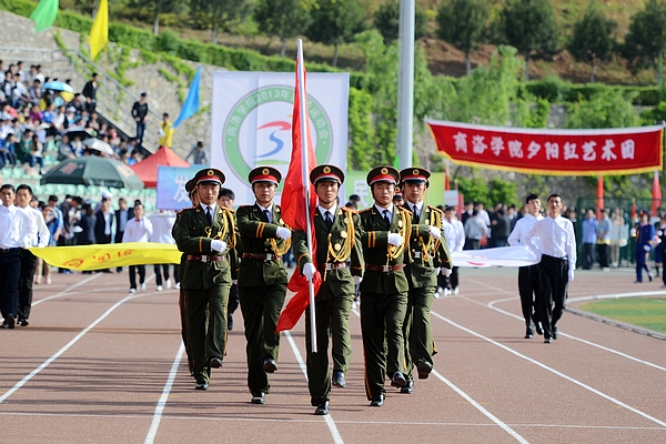在運(yùn)動(dòng)員進(jìn)行曲中,國(guó)旗方隊(duì)、會(huì)徽及標(biāo)語(yǔ)牌方隊(duì)、商洛學(xué)院夕陽(yáng)紅藝術(shù)團(tuán)、彩旗方隊(duì)、裁判員代表隊(duì)以及人文社會(huì)科學(xué)系代表隊(duì)等16支方隊(duì),精神飽滿(mǎn),依次入場(chǎng)。在今年的運(yùn)動(dòng)會(huì)開(kāi)幕式上,各代表隊(duì)方陣以不同的表演形式展示了各自的風(fēng)采。由我校離退休工作處組織離退休職工成立的商洛學(xué)院夕陽(yáng)紅藝術(shù)團(tuán)首次在公眾前亮相,成為一大亮點(diǎn)。