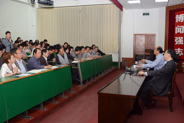 報(bào)告中,史秋衡教授縱橫分析了我國新型本科院校的現(xiàn)狀和發(fā)展走勢,結(jié)合國家中長期教育規(guī)劃和地方性本科院校的任務(wù),通過列舉大量數(shù)據(jù)和國外高校成功案例,認(rèn)為商洛學(xué)院要建設(shè)應(yīng)用型本科院校,就要創(chuàng)立高校與科研院所、行業(yè)、企業(yè)聯(lián)合培養(yǎng)人才的新機(jī)制;加強(qiáng)就業(yè)創(chuàng)業(yè)教育和就業(yè)指導(dǎo)服務(wù),改革招生、教學(xué)與就業(yè)模式;加強(qiáng)師生和教師間互動,深化內(nèi)部機(jī)構(gòu)改革,建立創(chuàng)意浮化機(jī)構(gòu)、文化提升機(jī)構(gòu)、人才推進(jìn)機(jī)構(gòu)、配套支持機(jī)構(gòu)、師生互動的保障機(jī)構(gòu);著力培養(yǎng)信念執(zhí)著、品德優(yōu)良、知識豐富、本領(lǐng)過硬的高素質(zhì)專門人才和拔尖創(chuàng)新人才。