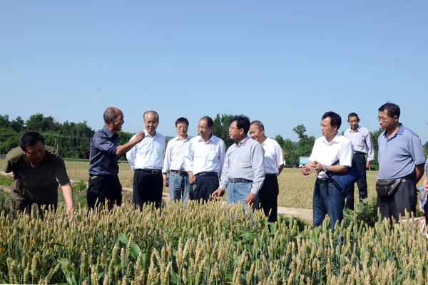 6月2日,由西北農(nóng)林科技大學(xué)教授張保軍任組長,西北農(nóng)林科技大學(xué)教授張正茂、商洛市農(nóng)業(yè)局高級農(nóng)藝師葉贇、商洛市農(nóng)科所高級農(nóng)藝師楊寶來、商洛市種子管理站高級農(nóng)藝師楊灶靈為成員的項目驗收委員會,冒著酷暑驅(qū)車來到“商麥5226”示范點洛南縣寺坡鎮(zhèn),現(xiàn)場觀摩了小麥的長勢和推廣種植情況,聽取了種植戶的評價。