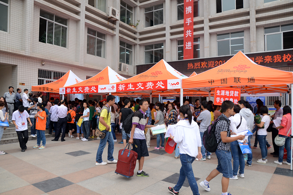 為保證新生順利入學(xué),學(xué)校在火車站、汽車站和校門口分別設(shè)立迎新接待點,為新生和家長們提供服務(wù)。校內(nèi)設(shè)立了新生咨詢處、行李寄存處、公安執(zhí)勤處、醫(yī)療服務(wù)處、家長休息區(qū),還專門為家境貧困的學(xué)生開放“綠色通道”。路口醒目的位置都有各系的迎新指示牌,志愿者們穿梭其中為新生提供各類咨詢和幫助。