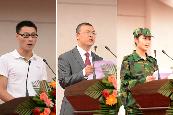 生物醫(yī)藥工程系教師彭曉邦博士,2011級城鄉(xiāng)發(fā)展與管理工程系學(xué)生趙樹強,2013級中文系學(xué)生高潔分別代表學(xué)校教師、在校生和新生做了大會發(fā)言,表達了對新生到來的歡迎和在大學(xué)奮發(fā)學(xué)習(xí)的決心。