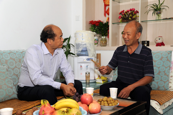 在于浩世家中,劉建林詳細(xì)了解了于浩世在小麥育種研究中取得的最新成果,并向他為學(xué)??蒲蟹?wù)地方工作做出的貢獻表示感謝。劉建林說,小麥育種工作是我校改革發(fā)展中涌現(xiàn)出的一個亮點,今后要把這項工作深入持續(xù)下去,可以考慮成立商洛學(xué)院良種繁育中心。希望于老師繼續(xù)作為育種工作的帶頭人,培養(yǎng)一支精干的科研團隊,為我校的發(fā)展凝煉特色。劉建林要求生物醫(yī)藥工程系高度重視和支持此項工作,積極協(xié)調(diào)、解決實驗田和實驗室問題,再出新成果、多出好成果。