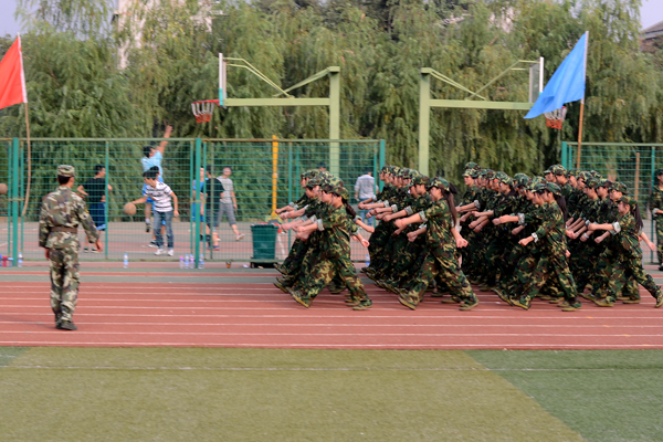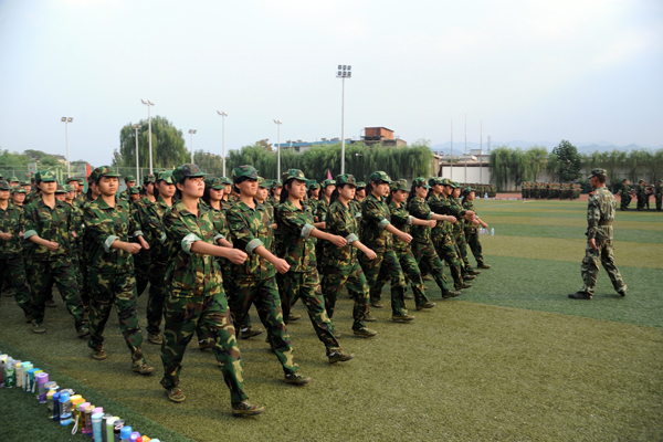 9月12日,2013級(jí)新生軍訓(xùn)已進(jìn)入第6天。來自全國(guó)24個(gè)省(市、自治區(qū))的3000余名學(xué)生編成6個(gè)營(yíng)36個(gè)連,正在熱火朝天地進(jìn)行軍事訓(xùn)練。涼爽多云的天氣為同學(xué)們的訓(xùn)練提供了不少便利,綠茵茵的青草和橄欖綠的迷彩軍裝相互輝映,讓同學(xué)們顯得活力十足。軍官們嚴(yán)格要求新生整理軍容、端正軍姿,不時(shí)親自示范,手把手糾正基本動(dòng)作。同學(xué)們?cè)诮坦俚膸ьI(lǐng)下認(rèn)真訓(xùn)練,絲毫沒有懈怠,已完成了軍姿、整理著裝、稍息、立正、齊步、正步等訓(xùn)練科目。