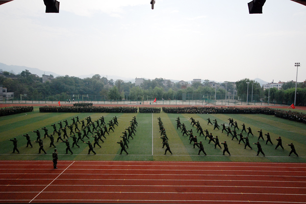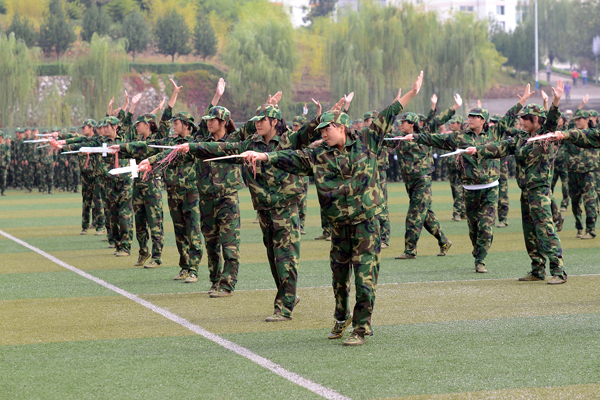 2013級(jí)學(xué)生軍訓(xùn)自9月7日開始,為期12天。完成了隊(duì)列隊(duì)形訓(xùn)練、整理內(nèi)務(wù)訓(xùn)練等規(guī)定內(nèi)容,并于9月16日進(jìn)行了15公里行軍訓(xùn)練。按照學(xué)校安排,軍訓(xùn)結(jié)束后,2013級(jí)新生將開始軍事理論學(xué)習(xí),接受國防知識(shí)教育。