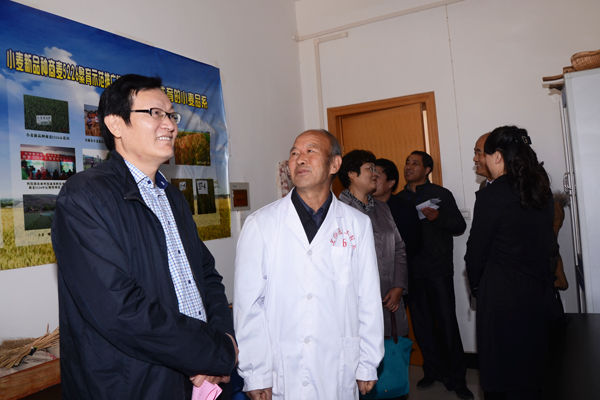黃暉一行深入我校GAP科研工程中心參觀了中醫(yī)藥、植物學(xué)、小麥育種等重點(diǎn)實(shí)驗(yàn)室,饒有趣味地觀摩了我校在服務(wù)地方資源開發(fā)利用、中醫(yī)藥研究方面的成果。黃暉一行介紹了國家在中醫(yī)藥領(lǐng)域的發(fā)展?fàn)顩r、研究前沿,鼓勵我校在食品藥品、中藥材領(lǐng)域做好基礎(chǔ)研究的同時(shí)向?qū)W科前沿邁進(jìn),研究出實(shí)用價(jià)值更高的成果。