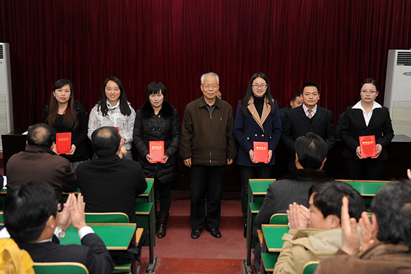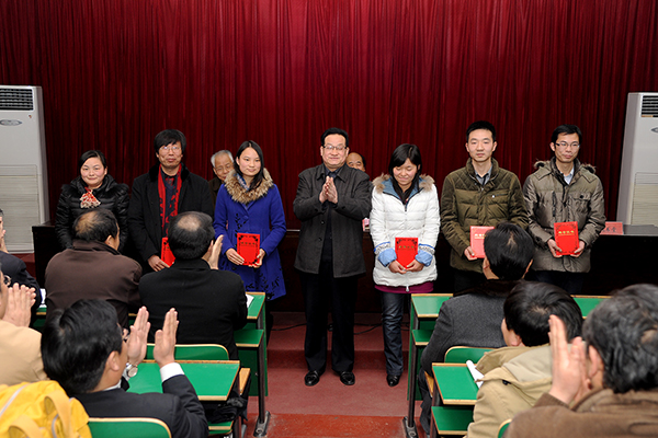 在熱烈的掌聲中,劉建林、王思懷、陳永莊、魏書堂分別為2013年度校級優(yōu)秀教案及優(yōu)秀電子課件獲獎?wù)?、?yōu)秀實習(xí)帶隊教師、教學(xué)技能競賽優(yōu)勝者、校級教學(xué)成果獎獲得者、校級本科教學(xué)工程精品課程和雙語教學(xué)示范課負(fù)責(zé)人、校級教學(xué)名師、省級科學(xué)成果二等獎獲得者頒獎;為省級本科教學(xué)工程項目授牌。副院長魏書堂宣讀了表彰決定。
