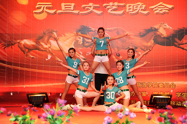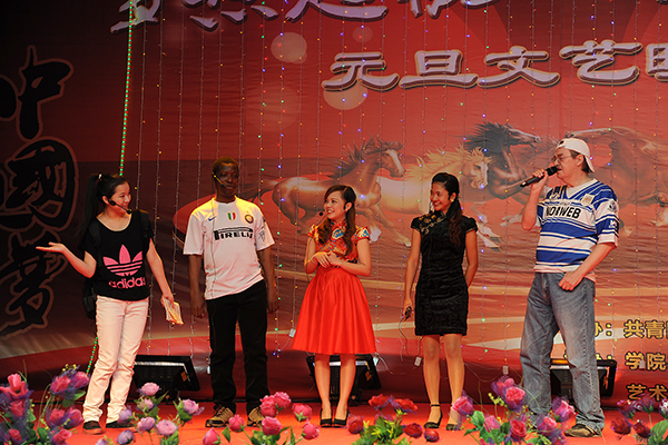 當(dāng)晚的大學(xué)生活動中心喜氣洋洋,洋溢著一派歡樂祥和的節(jié)日氣氛。晚會在歡快喜慶的民樂合奏《迎賓曲》《開門紅》中拉開了帷幕,18個節(jié)目涵蓋歌曲、舞蹈、相聲、器樂演奏、詩朗誦、情景劇、傳統(tǒng)戲曲等多種表演形式,內(nèi)容豐富、異彩紛呈。其中,苗族舞蹈《紅苗傘》詼諧輕快,生動活潑,展示了苗家趣味橫生的生活場景;獨具地方特色的歌曲《圪梁梁》豪邁粗獷,剛勁奔放;歌舞劇《together》講述了一個中國女孩在巴西旅游遇見四位外國友人后發(fā)生的的趣事,展示了我校外籍教師的風(fēng)采;被同學(xué)們冠以“樓姨”昵稱的宿舍管理員們也登臺表演了《中國福字舞》,向全校師生展現(xiàn)了積極向上的生活態(tài)度;由我校女教職工合唱隊帶來的小合唱《草原迎賓曲》《回娘家》以其婉轉(zhuǎn)動人的旋律、優(yōu)美深情的歌聲讓人深深陶醉;蒙古舞《草原天堂》展現(xiàn)了草原人民對美好生活的追求與向往。晚會在歌伴舞《中國夢》的旋律中圓滿落幕。