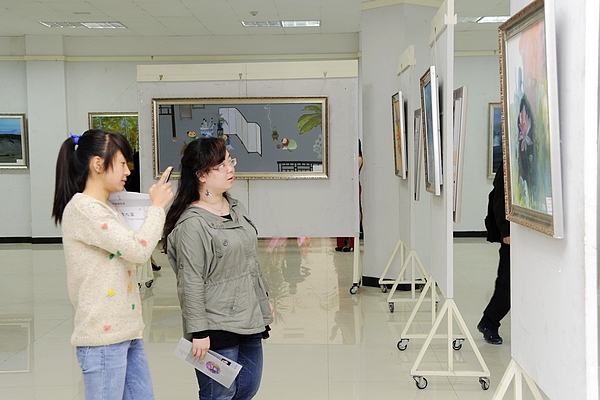 展廳內(nèi)人流如潮,我校師生紛紛前來(lái)參觀,并不時(shí)拿出相機(jī)、手機(jī)拍照。王思懷、魏書堂對(duì)楊靜的作品給予了高度評(píng)價(jià),并希望楊靜和廣大教師們能以作品感染學(xué)生,用創(chuàng)作中的領(lǐng)悟教育學(xué)生,在提高自身業(yè)務(wù)能力、科研水平的同時(shí),培養(yǎng)出一批批高素質(zhì)人才。藝術(shù)學(xué)院美術(shù)學(xué)專業(yè)的一位學(xué)生說(shuō),參觀畫展后覺得受益匪淺,楊靜老師通過(guò)高超的繪畫技巧和個(gè)人獨(dú)特的藝術(shù)修為,將東方精神與當(dāng)代藝術(shù)完美結(jié)合,給大家?guī)?lái)了一種無(wú)限的想象之美,本次畫展不但為同學(xué)們提供了一次非常好的學(xué)習(xí)機(jī)會(huì),更激發(fā)了他們從事藝術(shù)學(xué)習(xí)和創(chuàng)作的熱情。