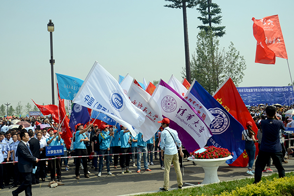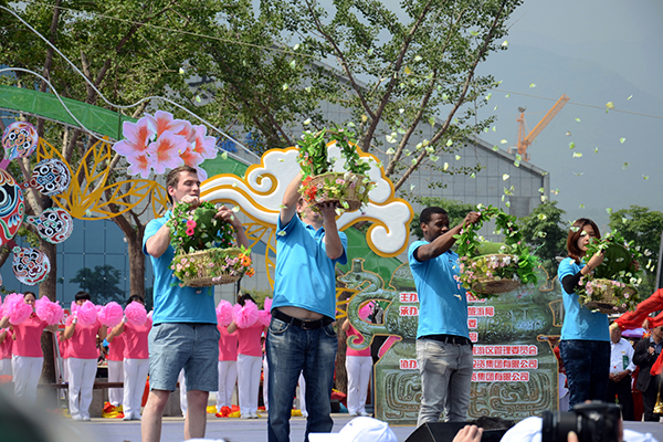 陜西省委、省人大、省政府、省政協及省旅游局等相關部門領導出席開幕式。由百余名大學生記者組成的大學生方陣作為開幕式最大方陣之一參與其中,同時由10余名留學生放飛2014只蝴蝶,祝福寶雞市文化旅游節(jié)暨太白山開園旅游文化周順利開展。寶雞市人大常委會主任、中共寶雞市委書記上官吉慶在開幕式上向中國陜西高校傳媒聯盟秘書長黃博授旗。