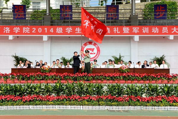 9月5日,我校隆重舉行2014級新生開學典禮暨軍訓動員大會。校領導張景書、劉建林、左曉民、王思懷、魏書堂,解放軍西安政治學院政治部主任徐自軍大校,2014級學生軍訓團團長、解放軍西安政治學院楊定友大校,商州區(qū)武裝部部長關海鵬出席了大會。校黨委書記張景書向承訓教官授2014級學生軍訓團團旗,校黨委副書記、校長劉建林作了重要講話。大會由校黨委副書記左曉民主持。各院部黨政負責人、各職能部門負責人與2014級新生參加了大會。