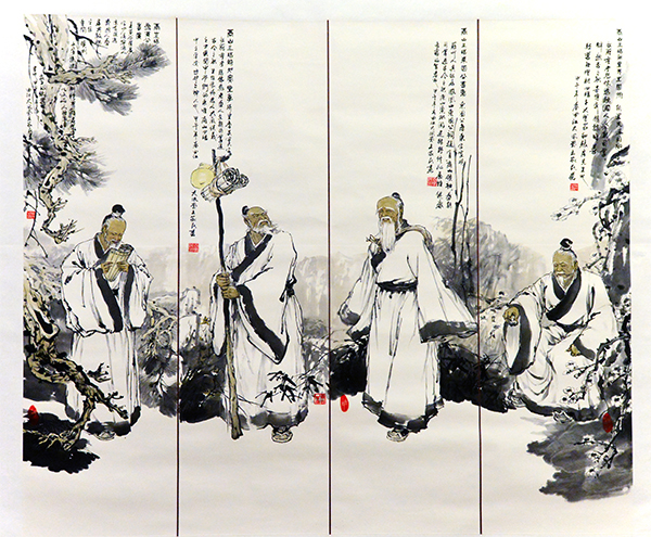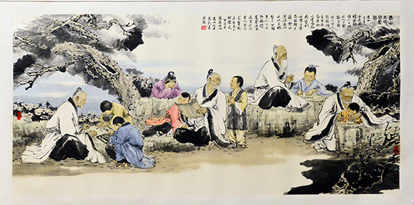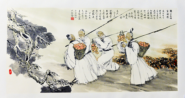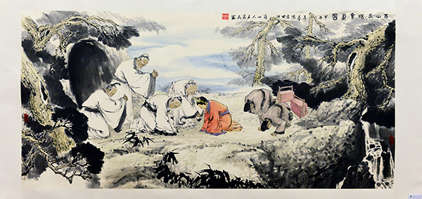本次畫展共展出以王家民家鄉(xiāng)商山洛水風(fēng)光景致以及歷史故事為題材的書畫作品70幅。其精品力作展示出了商洛山水之美和商山洛水特有的靈秀之氣,尤其是其商山四皓系列畫,通過生動具體的故事內(nèi)容、生活情景和人物形象把遙遠(yuǎn)而模糊的故事生動地再現(xiàn)出來,詮釋著“從歷史走向未來,從延續(xù)民族文化血脈中開拓前進(jìn)”的精神內(nèi)涵,具有深厚的文化底蘊。