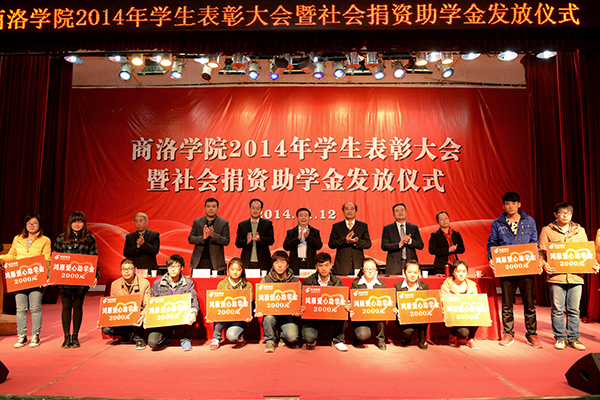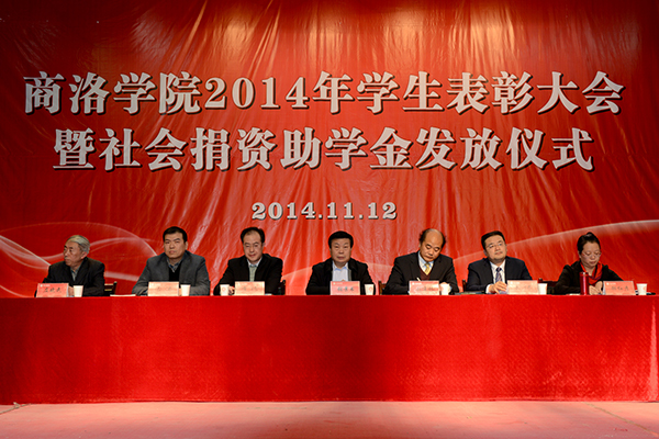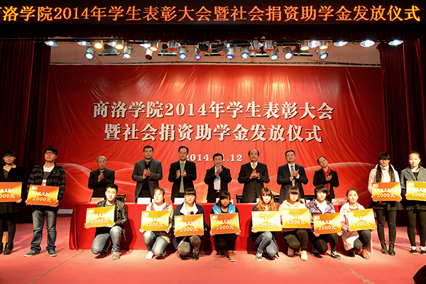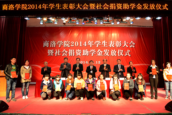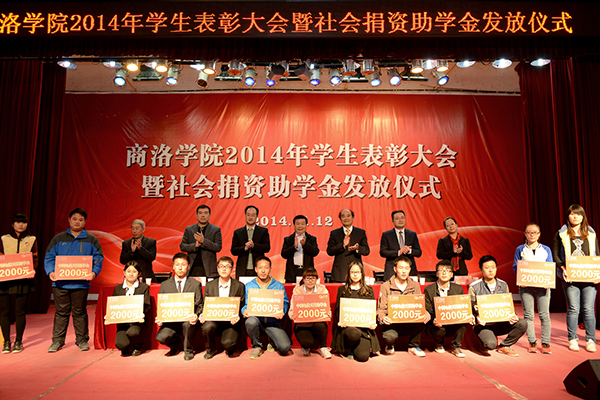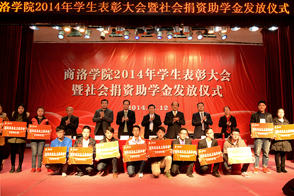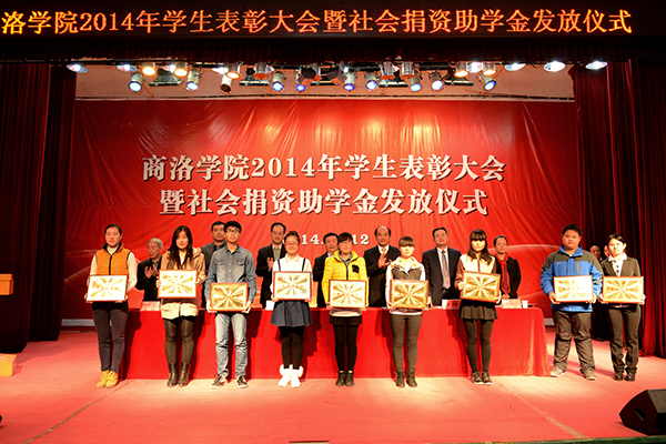學(xué)生處處長石啟英宣讀了關(guān)于表彰2013-2014學(xué)年三好學(xué)生、優(yōu)秀學(xué)生干部、先進班集體的決定。商洛供電局副局長趙紅強宣讀了2014年“國網(wǎng)商洛電力”助學(xué)金受助學(xué)生名單,中國郵政商洛分公司市場部主任王冬宣讀了2014年商洛郵政“鴻雁愛心”助學(xué)金受助學(xué)生名單,中國聯(lián)通商洛分公司副總經(jīng)理陳安民宣讀了2014年商洛聯(lián)通助學(xué)金受助學(xué)生名單,中國電信商洛分公司副總經(jīng)理胡萬社宣讀了2014年商洛電信天翼助學(xué)金受助學(xué)生名單。我校共有140名學(xué)生受到資助。