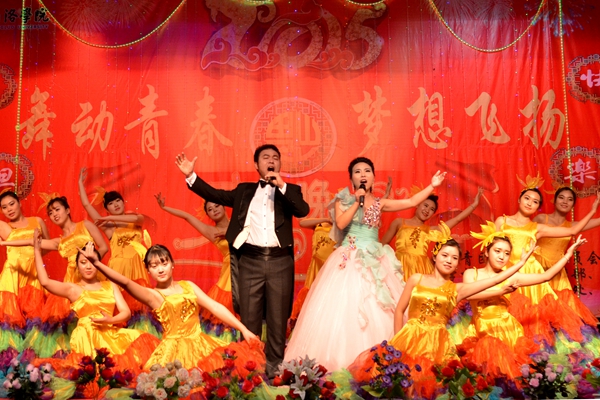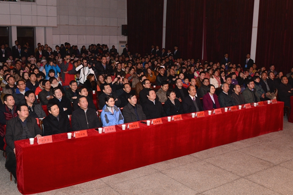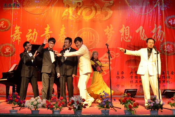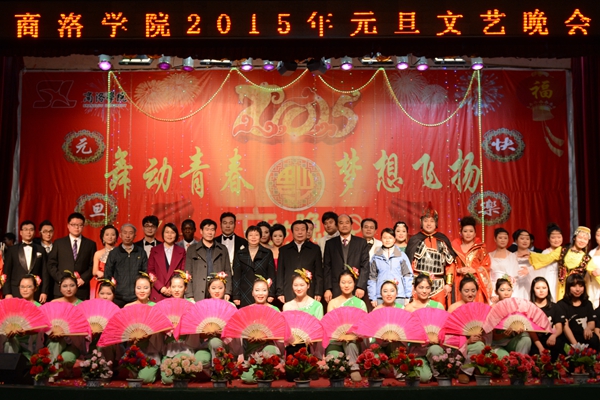 馬蹄留勝跡,羊毫譜新歌。12月30日晚,我校2015年度元旦文藝晚會在大學(xué)生活動中心隆重舉行。商洛市副市長劉榮賢,校黨委書記張景書、校長劉建林、黨委副書記左曉民、紀委書記王思懷、副校長魏書堂,商洛市教育局局長胡棟梁、共青團商洛市委書記曹艷萍、商州區(qū)政府副區(qū)長楊俊芬,商洛供電局、中國銀行商洛分行、中國建設(shè)銀行商洛分行、中國郵政商洛分公司、中國移動商洛分公司、中國聯(lián)通商洛分公司、中國電信商洛分公司、商洛市劇團、中國移動商州分公司有關(guān)領(lǐng)導(dǎo)同師生們一起觀看了演出。