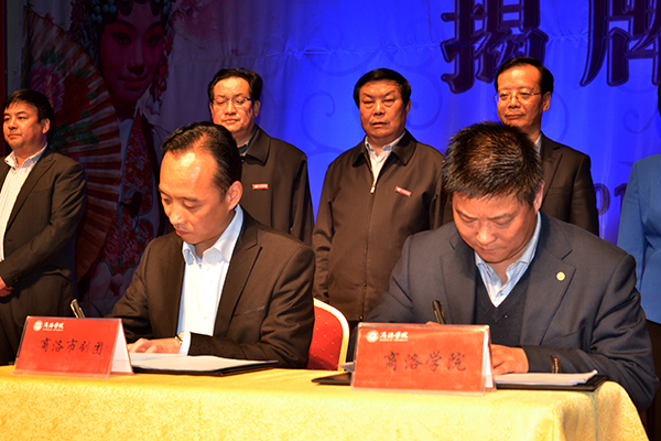 3月31日晚,由我校與商洛市劇團聯(lián)合成立的商洛學院戲曲學院揭牌儀式在市劇團小劇場隆重舉行。我校80屆校友、陜西省政府副秘書長、省政府機關(guān)事務(wù)局局長孟軍,商洛市政府副市長劉榮賢出席揭牌儀式,共同見證這一校地合作的盛事。我校黨委書記張景書、商洛市文廣新局局長周云岳為戲曲學院揭牌,我校副校長范新會、商洛市劇團團長李小斌簽署聯(lián)合成立商洛學院戲曲學院協(xié)議書,商洛市文廣新局局長周云岳代表鑒證方在協(xié)議書上簽字。揭牌儀式由校紀委書記王思懷主持。