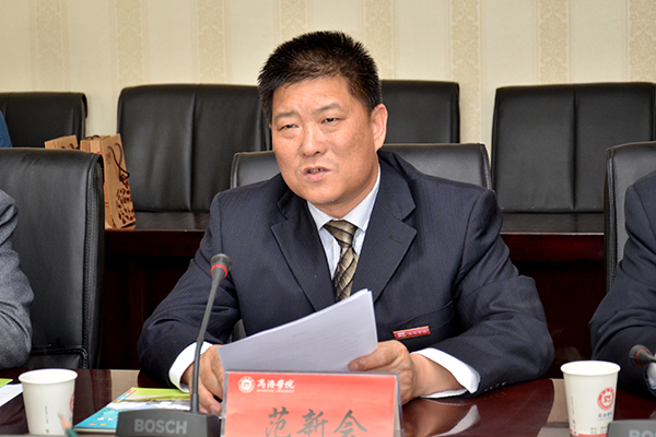 范新會代表學(xué)校在致辭中對許聰鑫一行表示熱烈歡迎,并介紹了學(xué)校建設(shè)發(fā)展的基本情況、下一步的發(fā)展思路。范新會指出,南開科技大學(xué)和我校同屬地方性應(yīng)用型本科院校,在辦學(xué)定位、服務(wù)地方經(jīng)濟(jì)社會發(fā)展方面有著諸多共同之處,合作基礎(chǔ)良好,真誠希望雙方不斷加強合作交流。