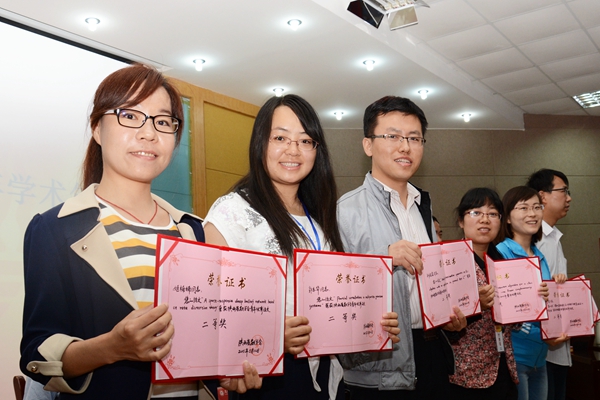 理事會(huì)評(píng)選出了2014年陜西省數(shù)學(xué)會(huì)青年教師優(yōu)秀論文獎(jiǎng)。徐宗本院士、劉寶盈校長(zhǎng)、理事長(zhǎng)趙彬、副理事長(zhǎng)徐偉分別給獲獎(jiǎng)?wù)哳C獎(jiǎng)。