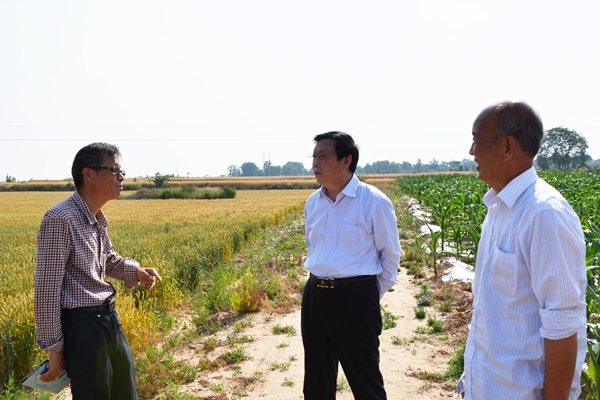 5月27日,校黨委書記張景書、校長劉建林一行前往咸陽市涇陽縣和西安市周至縣調(diào)研我校培育的商麥“5226”、“1619”品種和商麥“1032”新品系。學(xué)校辦公室、科研處、生物醫(yī)藥與食品工程學(xué)院及良種繁育中心相關(guān)負(fù)責(zé)人參加調(diào)研。