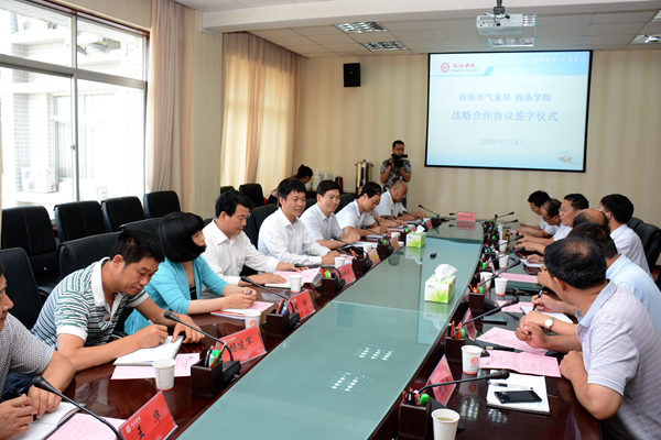 7月8日,商洛市氣象局與我校舉辦了戰(zhàn)略合作協(xié)議簽約儀式。校長劉建林,市氣象局局長王衛(wèi)民出席簽約儀式。副校長劉寶盈代表學(xué)校與王為民在戰(zhàn)略合作協(xié)議上簽字。商洛市氣象局副局長陳道輝、總工程師趙世發(fā)等領(lǐng)導(dǎo),學(xué)校辦公室、發(fā)展規(guī)劃與交流合作處、教務(wù)處、科研處、建工學(xué)院、數(shù)計學(xué)院及生物學(xué)院負(fù)責(zé)人參加了簽約儀式。