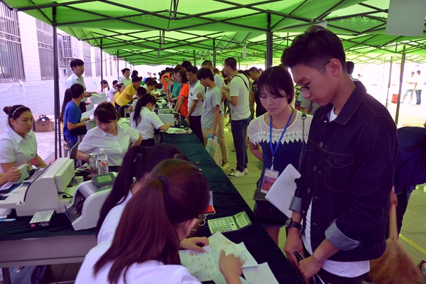 為保證新生順利入學(xué),學(xué)校安全面按排部署,各部門(mén)緊張有序投入工作。為方便外省市新生順利入校,學(xué)校在火車站、汽車站和校門(mén)口等地方分別設(shè)立迎新接待點(diǎn),校車一路暢通,日夜不間歇接送,為新生及家長(zhǎng)們提供便利服務(wù)。校內(nèi)設(shè)立了新生咨詢處、行李寄存處、公安執(zhí)勤處、醫(yī)療服務(wù)處、家長(zhǎng)休息區(qū),還專門(mén)為家境貧困的學(xué)生開(kāi)放“綠色通道”,辦理助學(xué)貸款。路口醒目位置都設(shè)置有迎新指示牌,志愿者們穿梭其中,忙碌地為新生提供各類咨詢和幫助。
