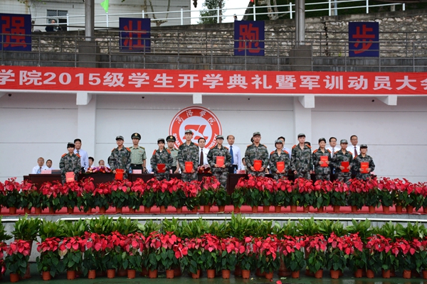 在校歌《正道直行做棟梁》激昂的歌聲中,大會(huì)宣告結(jié)束。2015級(jí)全體新生在教官的指導(dǎo)下開始了為期兩周的大學(xué)軍訓(xùn)生活。