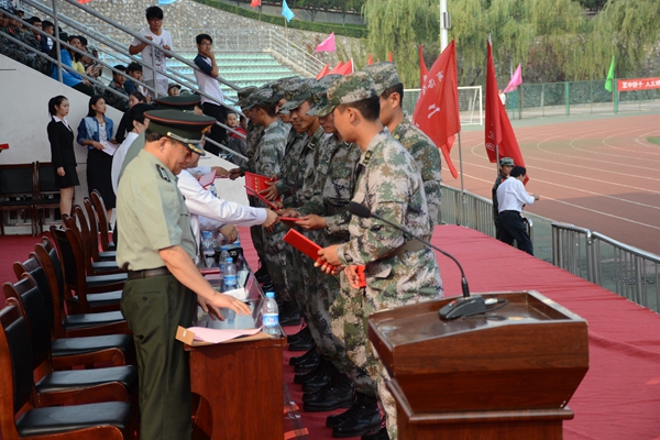 校武裝部部長、軍訓(xùn)團(tuán)政委石啟英宣讀了2015級軍訓(xùn)工作先進(jìn)集體及個人的表彰決定。主席臺上的領(lǐng)導(dǎo)和嘉賓為軍訓(xùn)隊列先進(jìn)集體、軍訓(xùn)內(nèi)務(wù)先進(jìn)集體、軍訓(xùn)工作優(yōu)秀教官、軍訓(xùn)工作先進(jìn)個人及軍訓(xùn)優(yōu)勝標(biāo)兵代表頒發(fā)了獎牌和證書。