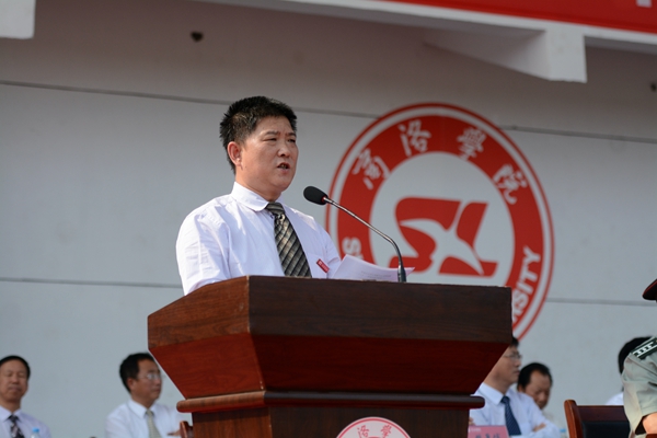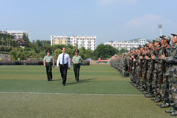校黨委副書記彭虎軍代表學(xué)校向大力支持、幫助我校軍訓(xùn)工作的解放軍西安政治學(xué)院、西安理工大學(xué)致謝,向承擔(dān)軍訓(xùn)任務(wù)的全體教官致敬,向參加軍訓(xùn)并取得良好成績的軍訓(xùn)團(tuán)體官兵表示親切的慰問和熱烈地祝賀。他在講話中指出,2015級全體同學(xué)以昂揚(yáng)的斗志、刻苦的精神進(jìn)行了隊列隊形訓(xùn)練、整理內(nèi)務(wù)訓(xùn)練、操槍訓(xùn)練、行軍拉練等規(guī)定的訓(xùn)練內(nèi)容,達(dá)到了軍訓(xùn)的預(yù)期目標(biāo);大家在認(rèn)真學(xué)習(xí)國防知識和軍事技能的同時,服從命令、聽從指揮、嚴(yán)守紀(jì)律、尊敬教官,養(yǎng)成了雷厲風(fēng)行的良好作風(fēng),強(qiáng)化了集體榮譽(yù)感。緊張而又精彩的軍訓(xùn)經(jīng)歷為同學(xué)們留下一筆珍貴的人生財富。彭虎軍要求全體新生在今后的學(xué)習(xí)生活中能夠保持和鞏固軍訓(xùn)成果,學(xué)習(xí)和發(fā)揚(yáng)人民解放軍的優(yōu)良傳統(tǒng)和作風(fēng),希望同學(xué)們珍惜時光,不做“低頭族”,要“抬頭看路,埋頭讀書”,努力把自己鍛煉成“理想信念堅定、本領(lǐng)過硬、勇于創(chuàng)新、艱苦奮斗、品德高尚”無愧于時代的英才,為實(shí)現(xiàn)中華民族偉大復(fù)興的中國夢做出自己應(yīng)有的貢獻(xiàn)。