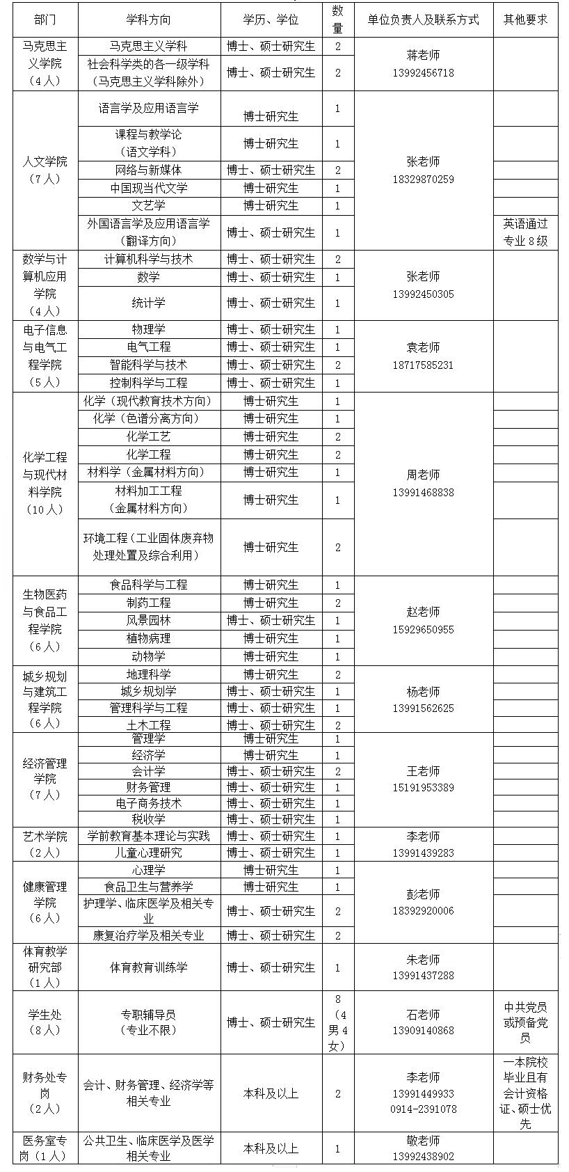 所學(xué)專業(yè)為我校人才需求專業(yè),年齡一般在45周歲以下,具有博士學(xué)歷學(xué)位,具有良好綜合素質(zhì)和較大發(fā)展?jié)摿Α?/p>