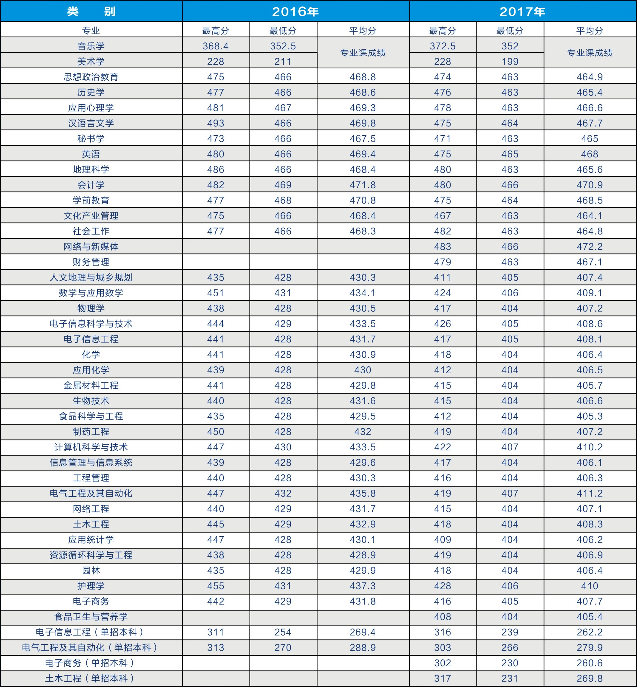 2016-2017年在陜各專(zhuān)業(yè)錄取分?jǐn)?shù)統(tǒng)計(jì)表