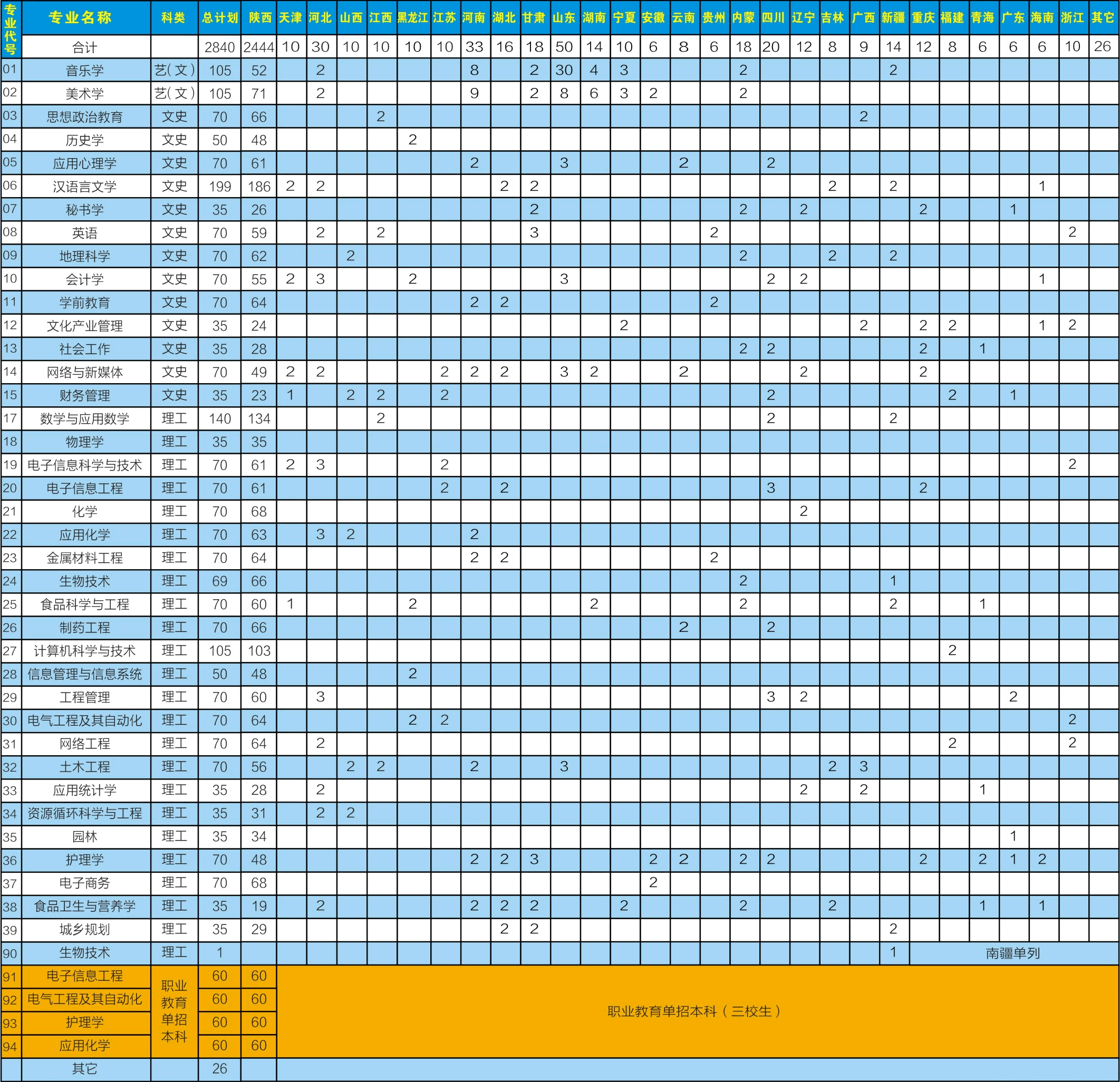 2018年商洛學(xué)院38個(gè)本科專(zhuān)業(yè)面向全國(guó)28個(gè)?。ㄖ陛犑?、自治區(qū))計(jì)劃錄取2840名優(yōu)秀學(xué)子。