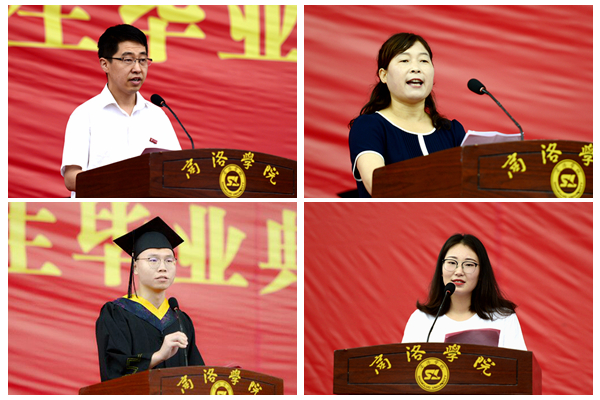 教師代表、建工學(xué)院趙培博士,畢業(yè)生家長代表馮亞娣,在校生代表、藝術(shù)學(xué)院學(xué)生張倩分別作了發(fā)言,為畢業(yè)生們送去美好祝福和良好祝愿。電信學(xué)院學(xué)生邢逸飛代表全體畢業(yè)生感謝母校的培育和師長的教導(dǎo),表示將不忘初心、勤奮拼搏,努力用學(xué)校所學(xué)回報社會,為母校爭取榮光。