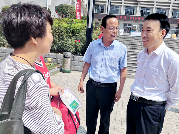 9月2日,天高氣爽,微風(fēng)徐徐,我校2019級(jí)新同學(xué)陸續(xù)來校報(bào)到。學(xué)校迎新工作部門早早準(zhǔn)備到位,師生按照迎新分工,展開熱情的雙臂忙碌而有序地迎接新生及家長(zhǎng)到來。下午,黨委書記龍治剛、校長(zhǎng)范新會(huì)、黨委副書記彭虎軍、副校長(zhǎng)劉勇也到迎新現(xiàn)場(chǎng)親切看望新生及家長(zhǎng),為他們送上關(guān)心與關(guān)愛。