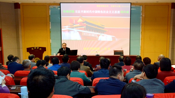 根據(jù)我校“不忘初心、牢記使命,做新時代合格黨支部書記”培訓(xùn)班課程安排,10月30日下午,校紀(jì)委原書記王思懷教授以《準(zhǔn)確把握習(xí)近平新時代中國特色社會主義思想的內(nèi)涵》為題為全校黨總支書記、黨支部書記作專題報告。