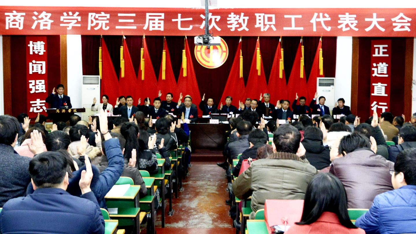在隨后的第二次全體會議上,與會代表表決通過了《商洛學(xué)院崗位績效工資分配辦法》《商洛學(xué)院第三輪崗位聘用期滿考核辦法》和《商洛學(xué)院第四輪崗位聘用工作方案》,通過了大會決議。黨委書記龍治剛講話。校長范新會主持第二次全體會議。