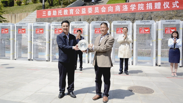 4月26日,三秦助托教育公益委員會向我校捐贈一批醫(yī)用口罩、體感消毒門及智慧校園設備,商洛市委副書記、市長鄭光照,三秦助托教育公益委員會首席執(zhí)行官、億和盛豐集團董事局主席黃鵬,三秦助托教育公益委員會執(zhí)行官、中建海峽建設發(fā)展有限公司陜西區(qū)域市場部總經理郭娜,校黨委書記龍治剛,校長范新會,副校長劉勇出席捐贈儀式。儀式由副校長王新軍主持。