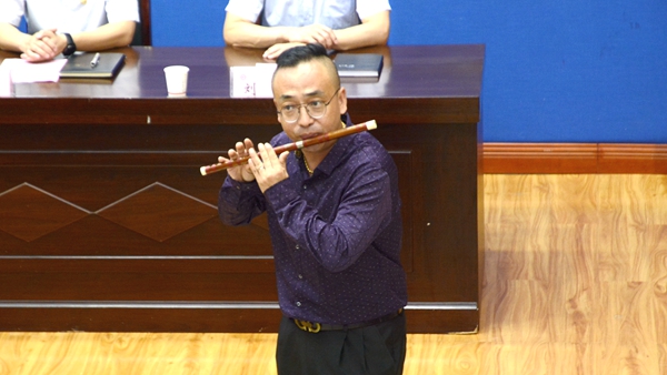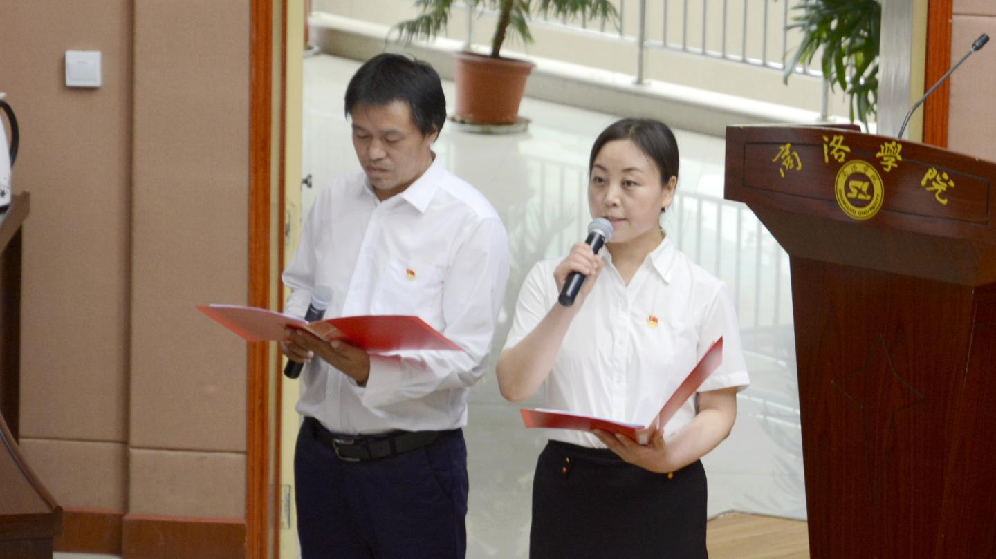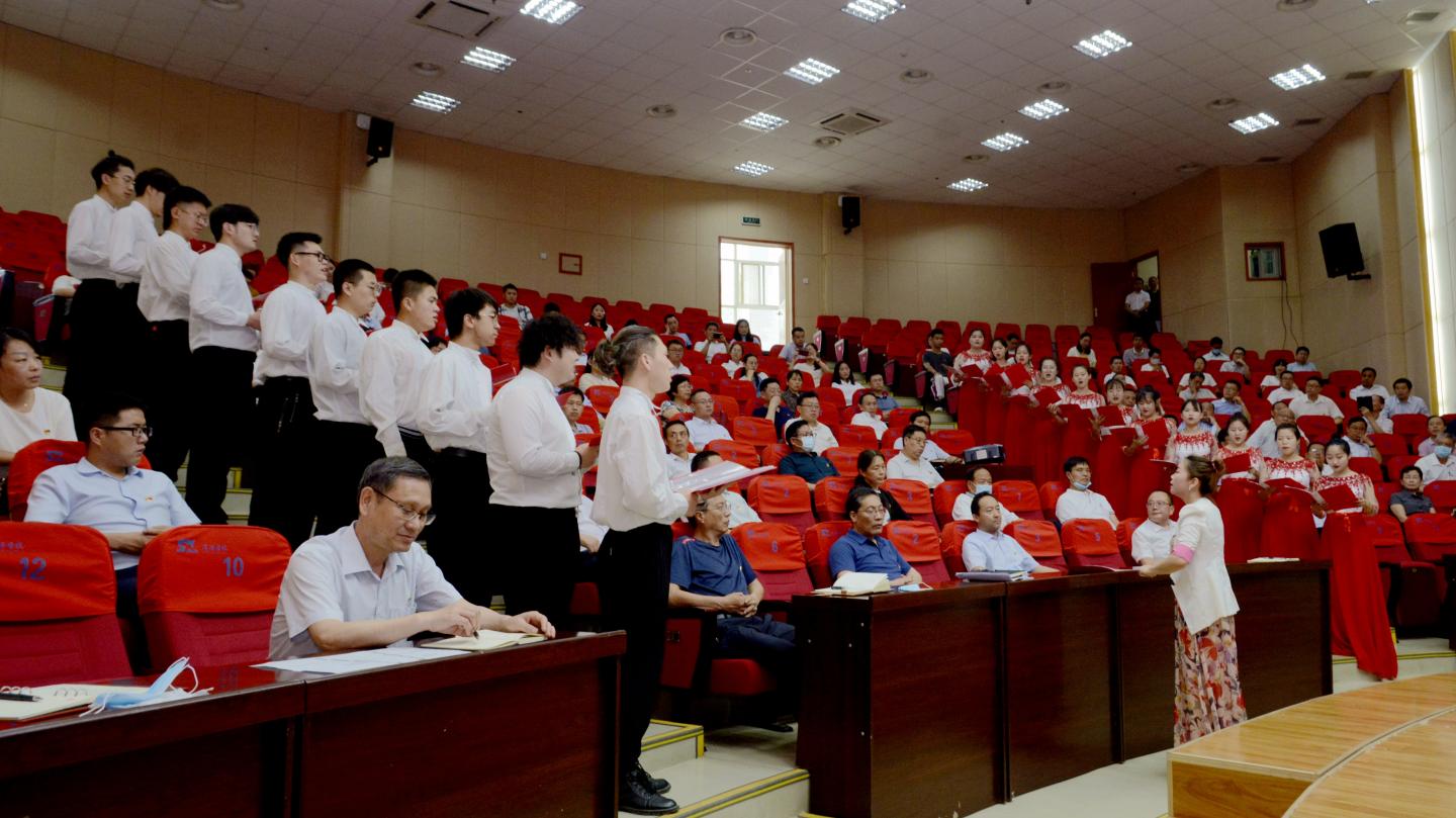大會還穿插了文藝表演,現(xiàn)場氣氛熱烈、激情飛揚,師生黨員們唱歡歌、奏樂器、誦詩篇,用飽滿的熱情紀念黨的99歲生日,抒發(fā)熱愛黨、熱愛祖國的濃濃情懷?!拔疫~著那堅定的腳步,走在你身后;為你捧出火紅的青春,一路去追求;為你拋灑滾燙的熱血,奉獻我所有?!薄栋岩磺蝎I給黨》的現(xiàn)場演唱唱出了在場師生黨員的愛黨心聲,聲情并茂的詩歌朗誦《黨啊,我們?yōu)槟璩纷屓诵某迸炫?,笛子獨奏《收割》、美聲獨唱《山尖尖托起太陽升》、合唱《我宣誓》《我和我的祖國》,現(xiàn)場高潮迭起、掌聲陣陣。
