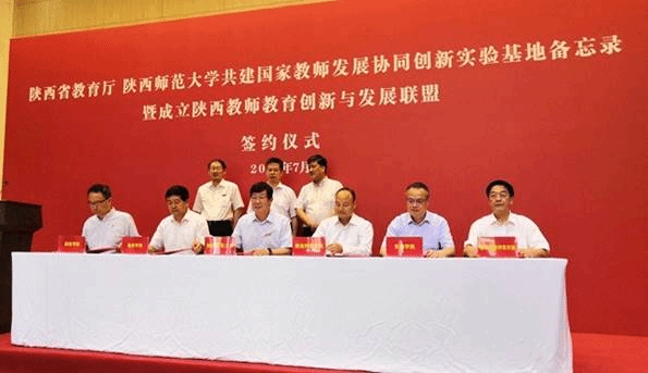 7月13日,陜西省教育廳與陜西師范大學共建國家教師發(fā)展協(xié)同創(chuàng)新實驗基地備忘錄暨成立陜西教師教育創(chuàng)新與發(fā)展聯(lián)盟簽約儀式在陜西師范大學舉行,副省長方光華出席簽約儀式并講話。省教育廳廳長王建利,陜西師范大學黨委書記程光旭、校長游旭群,我校黨委書記龍治剛以及延安大學、陜西理工大學等其他9所高校黨委書記或校長出席簽約儀式,簽約儀式由省教育廳副廳長劉建林主持。