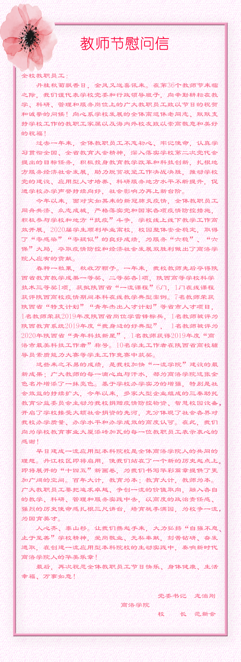 上一篇:校黨委書記龍治剛、校長范新會走訪慰問教師代表