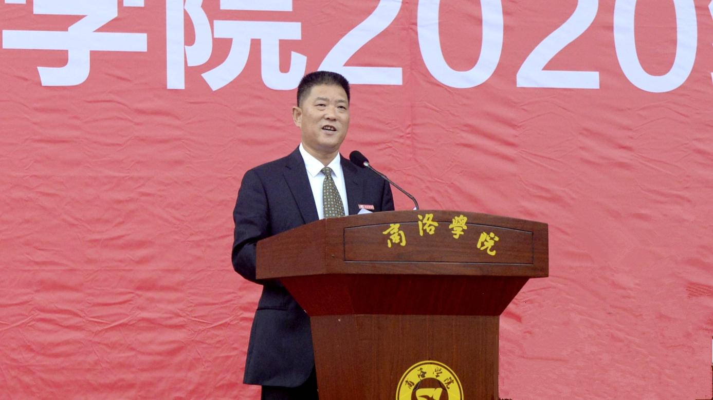 金秋九月,秦嶺蒼莽,丹水蕩漾。9月28日上午,我校2020級(jí)學(xué)生開(kāi)學(xué)典禮暨軍訓(xùn)動(dòng)員大會(huì)在學(xué)校體育場(chǎng)隆重舉行。校黨委書(shū)記龍治剛、校長(zhǎng)范新會(huì)、黨委副書(shū)記劉勇,黨委副書(shū)記、紀(jì)委書(shū)記、監(jiān)察專員曹淵、副校長(zhǎng)劉寶盈、副校長(zhǎng)王新軍,商洛軍分區(qū)動(dòng)員處處長(zhǎng)、商洛市人民政府征兵辦公室副主任周武強(qiáng)上校,武警商洛支隊(duì)參謀長(zhǎng)、2020級(jí)新生軍訓(xùn)團(tuán)團(tuán)長(zhǎng)耿小民中校,化學(xué)92屆校友、北京校友分會(huì)會(huì)長(zhǎng)、北京龍門育才學(xué)校校長(zhǎng)馬良竹出席大會(huì)。二級(jí)學(xué)院(部)黨政主要負(fù)責(zé)人及有關(guān)職能部門主要負(fù)責(zé)人,2020級(jí)全體新生參加大會(huì)。大會(huì)由劉勇主持。