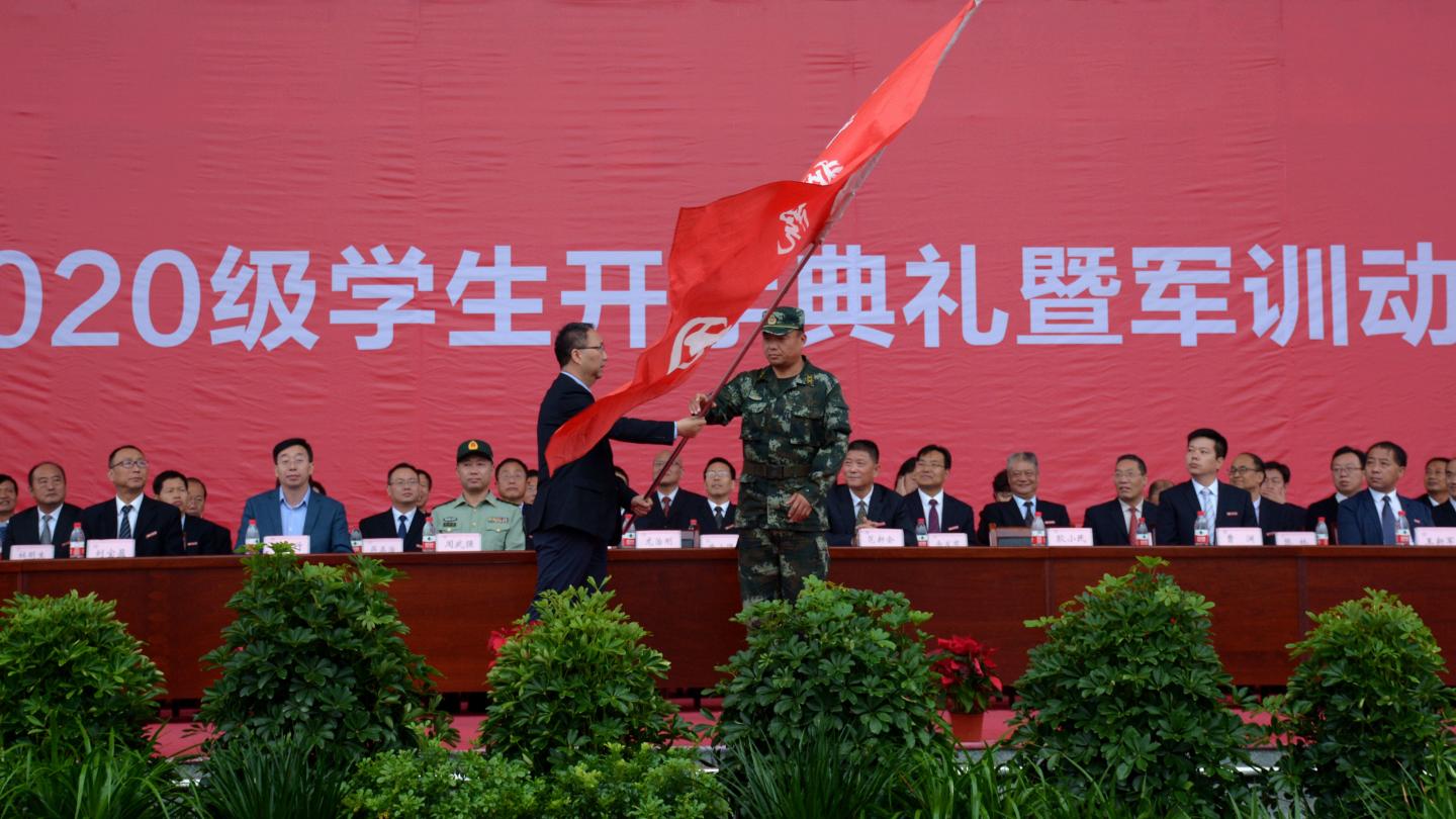 大會(huì)伊始,全體起立,奏唱國(guó)歌,升國(guó)旗。龍治剛為2020級(jí)學(xué)生軍訓(xùn)團(tuán)授團(tuán)旗,范新會(huì)講話,劉寶盈宣讀2020級(jí)新生獎(jiǎng)學(xué)金表彰決定,出席大會(huì)的校領(lǐng)導(dǎo)與嘉賓為獲獎(jiǎng)新生頒獎(jiǎng)。