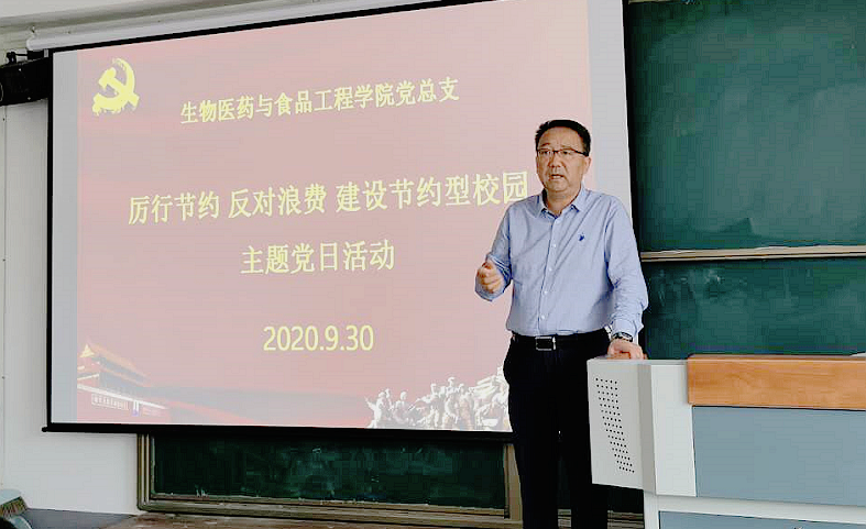9月30日,校黨委書記龍治剛深入生物學院黨總支,參加 “厲行節(jié)約,反對浪費,建設節(jié)約型校園”主題黨日活動,帶領全體黨員學習了《中國共產(chǎn)黨基層組織選舉工作條例》及習近平總書記關于厲行節(jié)約、反對浪費重要指示精神,與大家一道學習觀看了《焦點訪談》“一粥一飯不易且重大”電視節(jié)目,并帶頭在“我倡議、我踐行”留言板上寫下“傳承美德、勤儉節(jié)約、珍惜糧食、從我做起”16字感言,教育引導黨員師生愛惜糧食、以勤儉節(jié)約為榮。