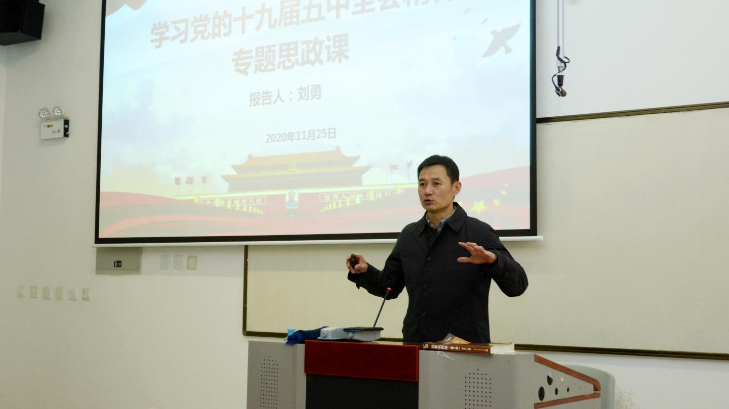 校黨委副書記劉勇在講授中強調,深入學習貫徹黨的十九屆五中全會精神,就是要加強黨對教育工作的全面領導,深刻理解和把握我國2035年遠景目標和“十四五”主要目標,充分認識其中凸顯的以人民為中心的發(fā)展思想,聚焦新發(fā)展階段、新發(fā)展理念、新發(fā)展格局和貫穿其中的高質量、可持續(xù)發(fā)展要求,聚焦提升教育質量、推動內涵式發(fā)展。他指出,高質量發(fā)展離不開高素質人才的支撐,廣大青年學子要立志高遠,在新發(fā)展格局中找準自己的位置,從小事做起,不厭其小、以促其大,在報效祖國、服務社會中實現(xiàn)自身價值。