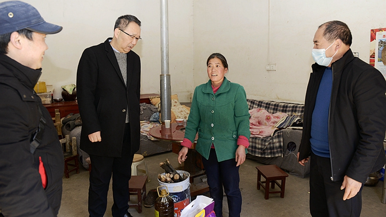 座談結(jié)束后,龍治剛一行深入和坪村老黨員劉永勇、殘疾家庭王玉財、患大病家庭汪明軍、孤兒家庭吳光鳳、困難群眾游福連等群眾家中走訪慰問,為他們送上慰問品和新春祝福。每到一戶,龍治剛都詳細詢問群眾的生產(chǎn)生活、家庭收入、享受政策落實和產(chǎn)業(yè)發(fā)展收益情況,了解他們春節(jié)年貨籌備和子女上學(xué)就業(yè)等情況,勉勵他們不畏困難、增強信心、勤勞致富,早日實現(xiàn)小康生活。