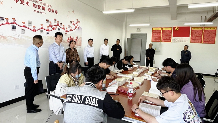 督導檢查期間,指導組聽取了學校工作匯報,實地考察了我校商洛紅色文化資料館、商洛文化暨賈平凹研究中心及藝術(shù)展廳,深入馬克思主義學院查看黨史學習教育相關(guān)資料,了解工作特色亮點,走訪了電信學院、化材學院團總支青年閱讀角,檢查指導師生黨史學習教育開展情況。