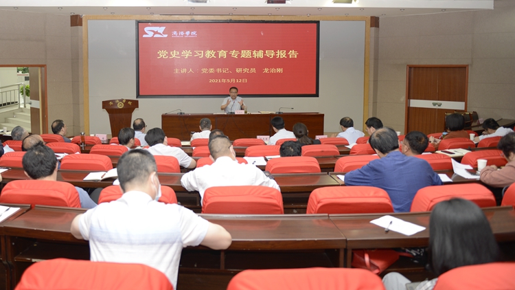 龍治剛在講話中指出,黨史學習教育開展以來,校內各單位高度重視、積極行動,通過支部學習、主題黨日活動、微黨課大賽、演講比賽等多種形式,扎實開展黨史學習教育,營造了良好的氛圍,掀起了黨史學習教育的高潮,得到了省委黨史學習教育第十三巡回指導組的肯定。