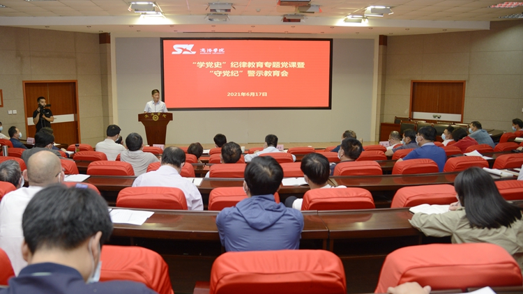 為進一步貫徹落實習近平總書記在黨史學習教育動員大會上的重要講話精神,扎實落實中央紀委、省紀委五次全會安排部署,引導廣大黨員干部堅定理想信念、強化紀律意識,推動我校全面從嚴治黨向縱深發(fā)展,根據(jù)學校第四個“紀律教育學習宣傳月”活動安排,6月17日,我校召開了“學黨史” 紀律教育專題黨課暨“守黨紀”警示教育大會。校長范新會,黨委副書記彭虎軍、劉勇,副校長王新軍、郭瑾出席會議。全體副處級以上干部參加會議。會議由劉勇主持。