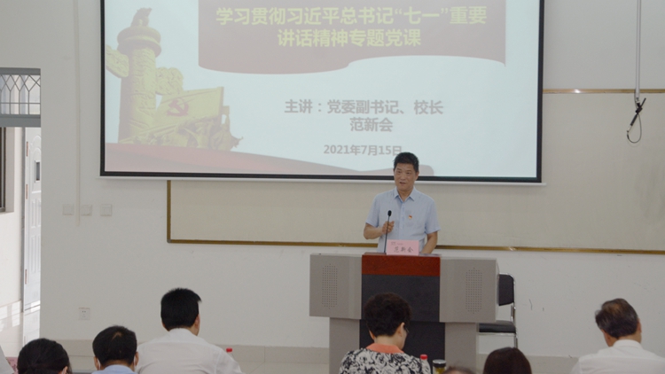 為深入學(xué)習(xí)貫徹習(xí)近平總書(shū)記“七一”重要講話(huà)精神,充分發(fā)揮黨員干部模范帶頭作用,在全校持續(xù)掀起學(xué)習(xí)熱潮,7月15日,黨委副書(shū)記、校長(zhǎng)范新會(huì)為建工學(xué)院全體教師黨員講授了學(xué)習(xí)貫徹習(xí)近平總書(shū)記“七一”重要講話(huà)精神專(zhuān)題黨課。陜西省委黨史學(xué)習(xí)教育第十三巡回指導(dǎo)組組長(zhǎng)、商洛市人大常委會(huì)一級(jí)巡視員劉淑慧與指導(dǎo)組成員,黨委副書(shū)記彭虎軍旁聽(tīng)了黨課。