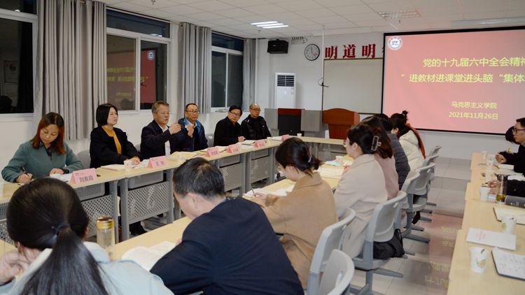 為深入學(xué)習(xí)黨的十九屆六中全會(huì)精神,推進(jìn)全會(huì)精神進(jìn)教材進(jìn)課堂進(jìn)頭腦,11月26日下午,我校召開(kāi)黨的十九屆六中全會(huì)精神“三進(jìn)”集體備課會(huì)。校黨委書(shū)記張志昌、副校長(zhǎng)劉寶盈出席會(huì)議,教務(wù)處、中國(guó)特色社會(huì)主義理論體系研究中心負(fù)責(zé)人,馬克思主義學(xué)院相關(guān)負(fù)責(zé)人及全體教師參加會(huì)議。