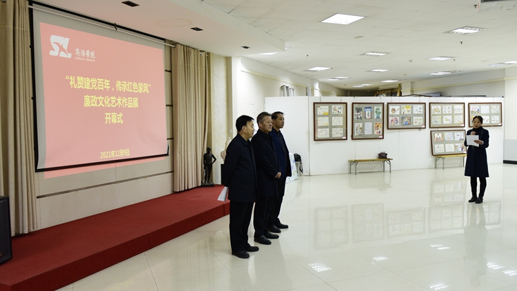 12月9日上午,由校紀委主辦、藝術(shù)學(xué)院承辦的“禮贊建黨百年,傳承紅色家風(fēng)”廉政文化藝術(shù)作品展在北新街校區(qū)圖書館五樓藝術(shù)展廳開幕。校黨委書記張志昌,黨委副書記彭虎軍,副校長王新軍、劉寶盈出席開幕式并參觀作品展。各職能部門負責(zé)人、二級學(xué)院(部)黨政負責(zé)人以及藝術(shù)學(xué)院師生代表參加了開幕式。開幕式由紀委副書記田小莉主持。